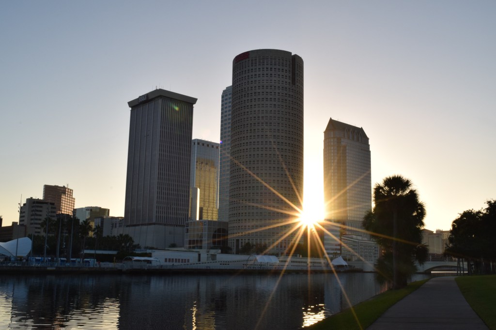 I love my city of Tampa. I enjoy taking photos of the cityscape. I am fortunate enough to live right downtown on the Tampa Riverwalk, so I walk it often. The Tampa Riverwalk runs 2.6 miles along the Hillsborough River. There are several parks, restaurants, and museums along the route. Right across the river from downtown sits the University of Tampa, which I especially enjoy taking pictures of, because of it’s unique architecture. I took this picture in the of Fall of 2021 at sunrise. I woke up early before the sun, so I could capture some different pictures of Tampa as the sun was coming up. This picture was taken on the University of Tampa side of the Riverwalk, looking back across the river to downtown. I was able to capture this picture of the sun rising and just as it was peaking through the buildings. I love the way the rays of light burst through the building welcoming a new day to the city.